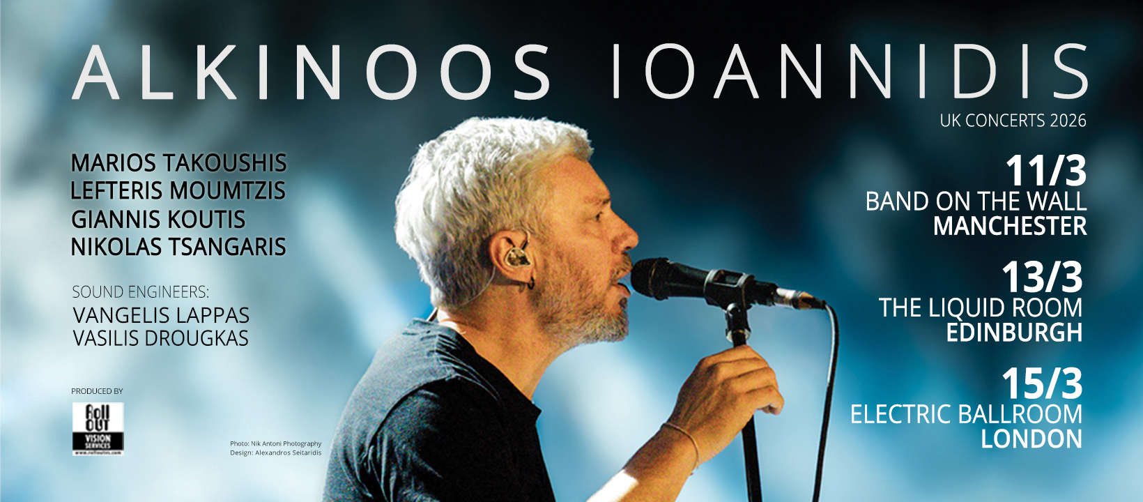 * Εισιτήρια για τη συναυλία του Αλκίνοου Ιωαννίδη που θα πραγματοποιηθεί την Κυριακή 15 Μαρτίου στο Electric Ballroom στο Λονδίνο