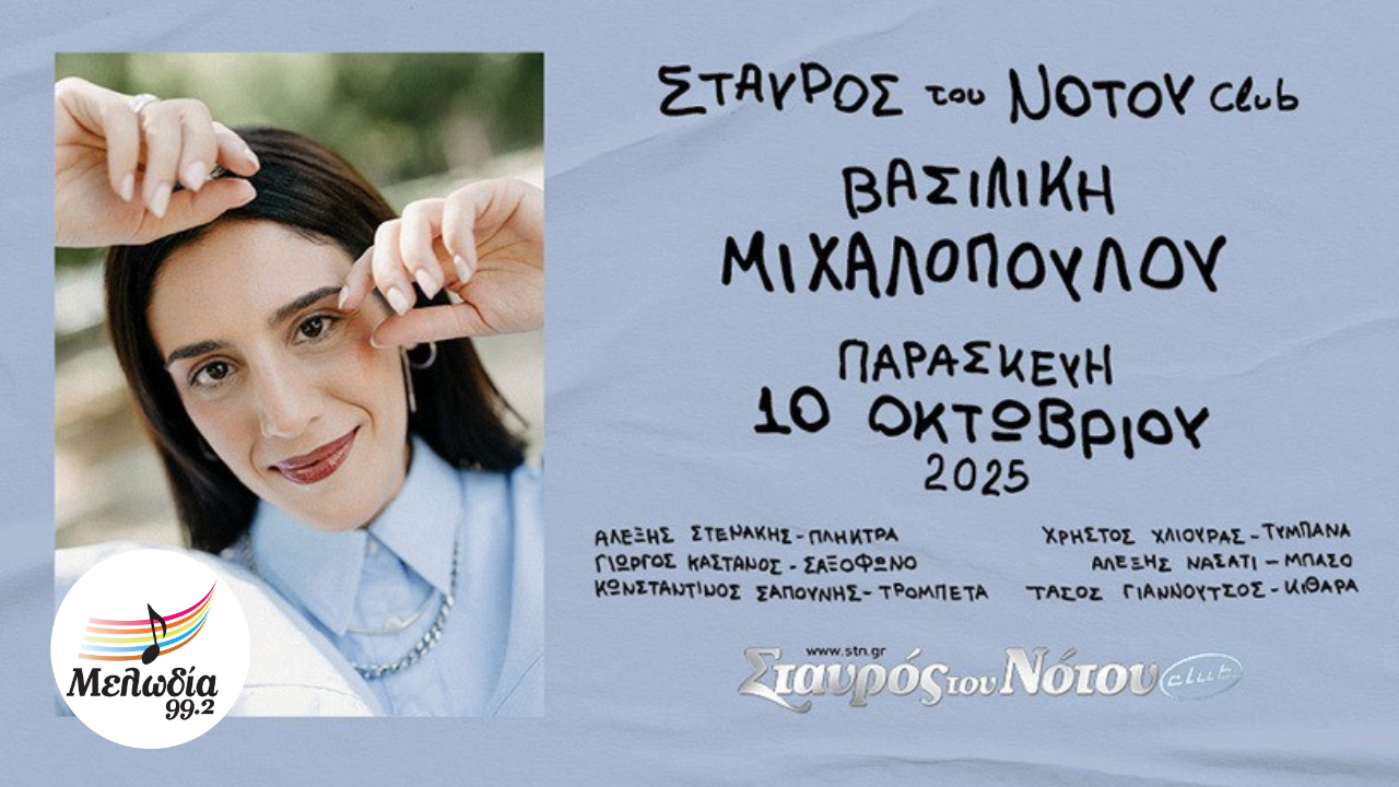Η Βασιλική Μιχαλοπούλου μας προσκαλεί και φέτος στον Σταυρό του Νότου Club, την Παρασκευή 10 Οκτωβρίου! Η Βασιλική επιστρέφει με ανανεωμένη μπάντα και ρεπερτόριο, για να ξεσηκώσει το κοινό με τα τραγούδια και την δυναμική της ενέργεια στη σκηνή.